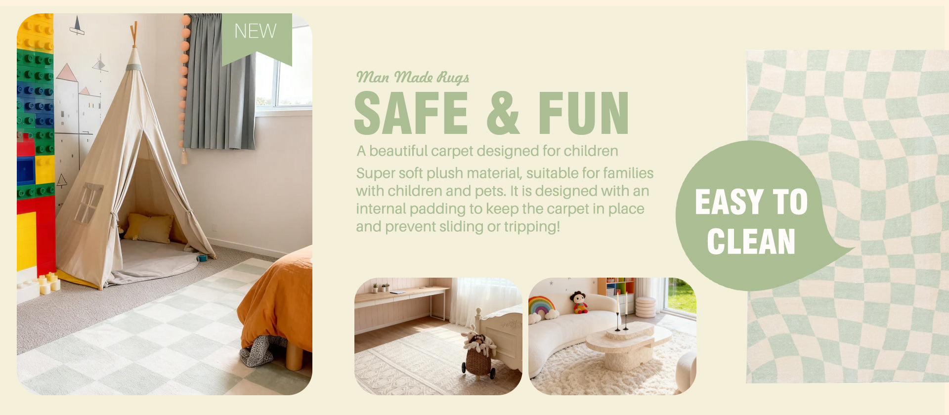 Ilenna Green and Ivory Abstract Checkered Washable Rug